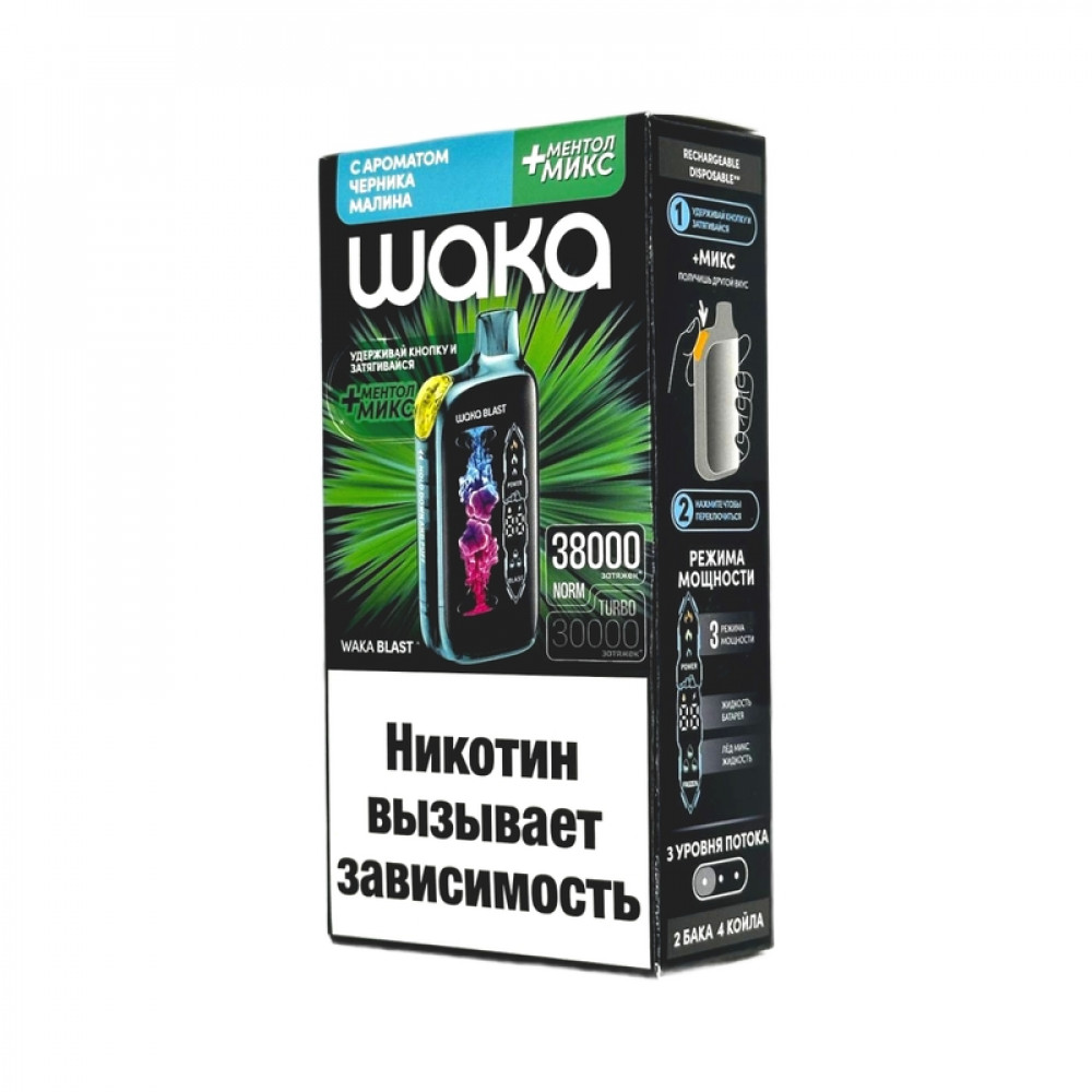 WAKA BLAST 38000 Hard - Черника малина + ментол микс - купить в Ревде